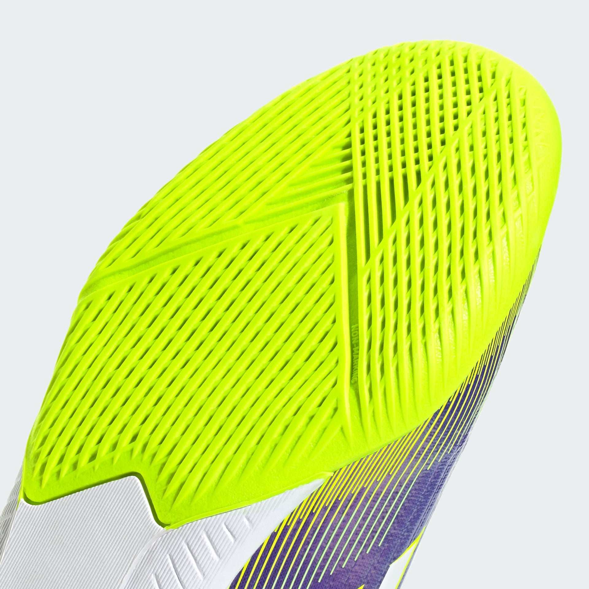 Encontre a sua velocidade para se expressar nas quadras. Sinta a adrenalina com a chuteira adidas F50, desenvolvida para velocidade. Destacando-se com uma atraente estampa Sprintgrid, o cabedal Fiberskin desta chuteira infantil League usa uma língua perfurada para um jogo refrescante. O solado de borracha que não deixa marcas mantém seu ritmo em superfícies indoor.