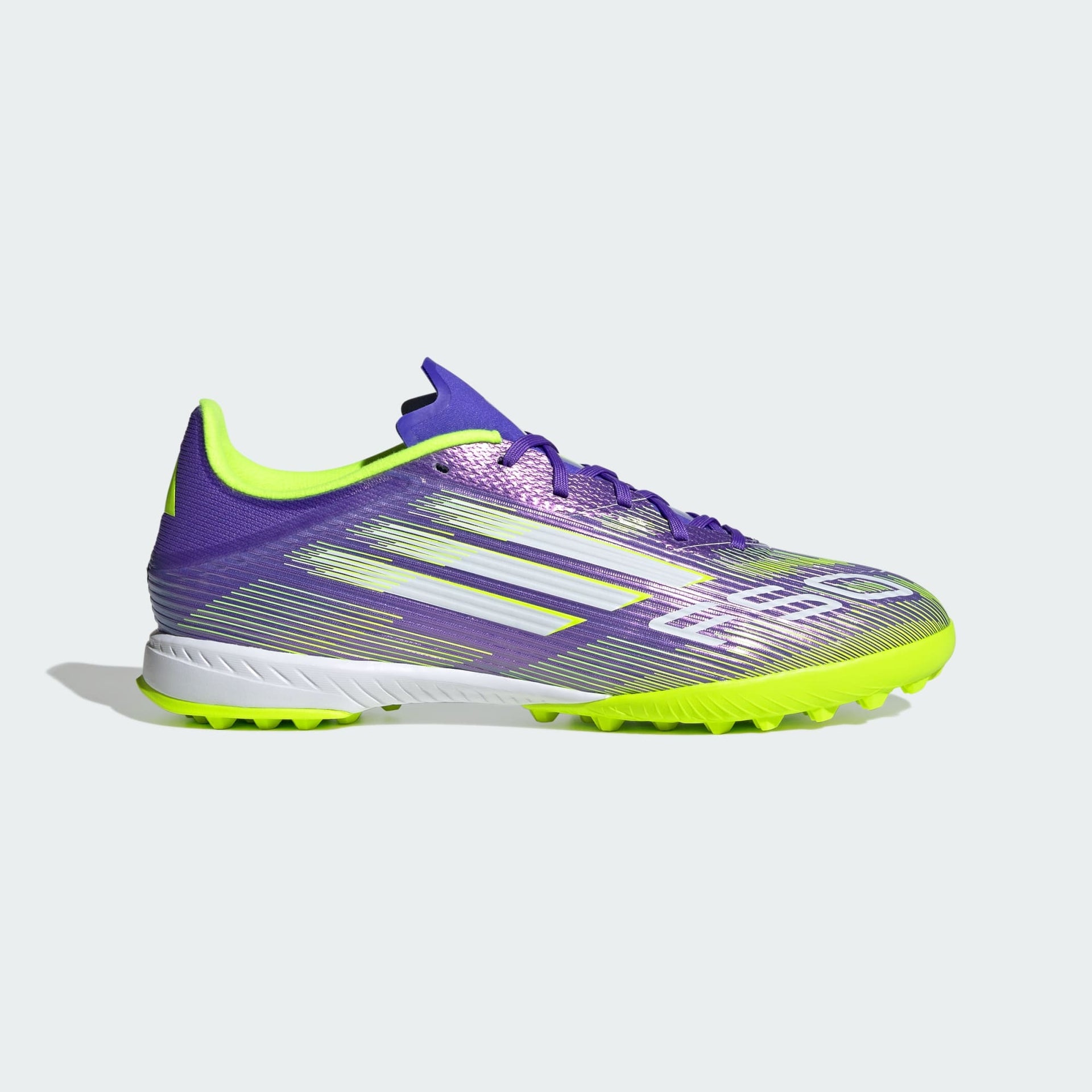 Encontre a sua velocidade para se expressar nas quadras. Sinta a adrenalina com a chuteira adidas F50, desenvolvida para velocidade. Esta chuteira mantém você confortável em movimento com o cabedal de suporte Fiberskin e a língua perfurada. Vire a chuteira e você encontrará o solado de borracha sulcado que oferece suporte para jogos rápidos em gramados artificiais.