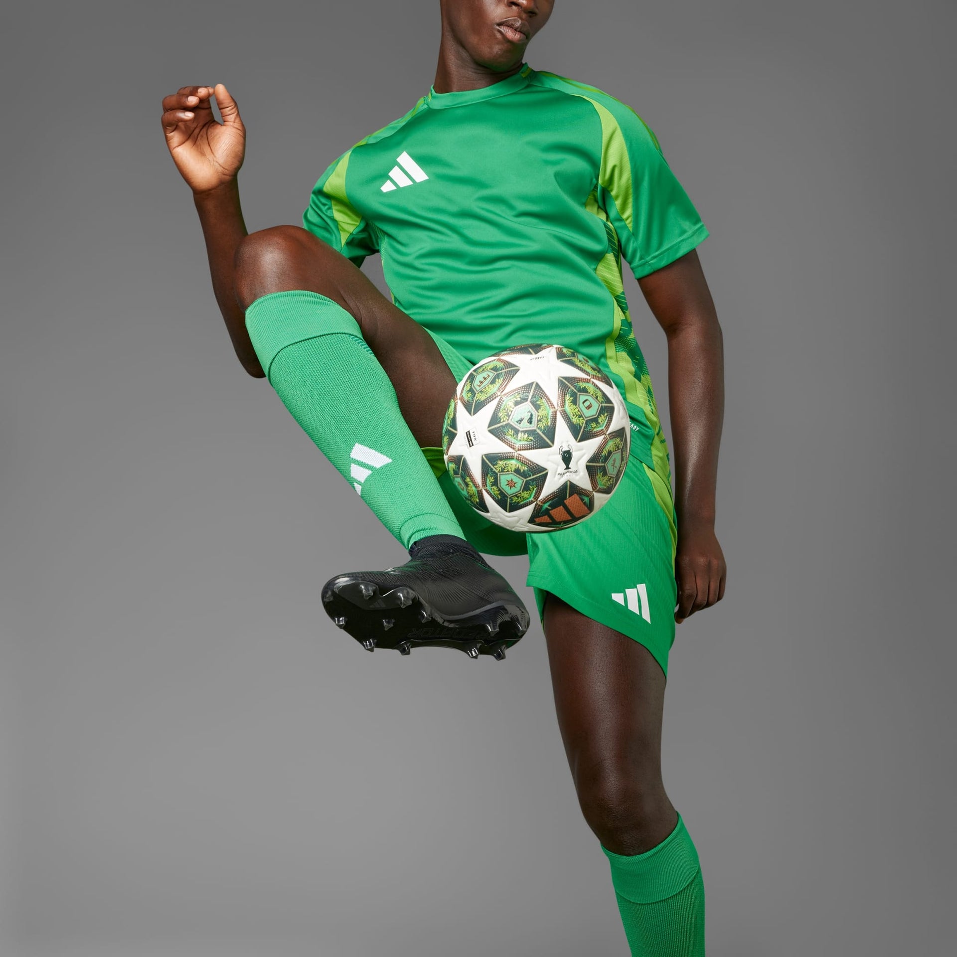 Inspirada nos verdes das cúpulas de cobre de Munique e em um cenário digno de cartão-postal, esta bola Pro da adidas é uma elegante homenagem ao anfitrião da final da UEFA Champions League 24/25. Usada durante as etapas finais da competição de clube de maior prestígio da Europa, ela é feita com uma câmara de butil de alta qualidade e revestimento sem costuras para futebol de alto desempenho.